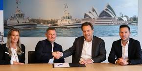Tina Langford (Co-director I.M.E), Paul Langford (Managing Director I.M.E), Arnout Damen (CEO Damen Shipyards Group), Edwin van der Poel (Director Damen Services UK). Photo: Damen